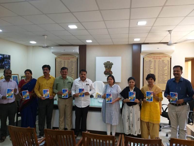 लोकसभा निवडणूकीच्या अनुषंगाने जिल्हा माहिती कार्यालयाने तयार केलेल्या 45- सातारा मतदार संघ निवडणूक 2019 पुर्वपिठीकेचे प्रकाशन जिल्हाधिकारी तथा जिल्हा निवडणूक निर्णय अधिकारी श्वेता सिंघल यांच्या हस्ते त्यांच्याच कक्षात करण्यात आले. याप्रसंगी निवासी उपजिल्हाधिकारी सुनिल थोरवे, उपजिल्हा निवडणूक अधिकारी पुनम मेहता, जिल्हा कोषागार अधिकारी धनाजी शिंदे, जिल्हा माहिती अधिकारी युवराज पाटील, जिल्हा कौशल्य विकास अधिकारी सचिन जाधव आदी उपस्थित होते.