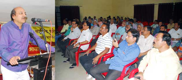 यावेळी बोलताना कवी लाखे म्हणाले, जगाच्या पाठीवर जेथे जेथे म्हणून मराठी बोलले, वाचले, लिहिले जाते तेथील मराठी भाषा प्रेमिकांनी गदिमा म्हणजेच ग.दि. माडगूळकर यांना आपल्या मनात मानाचे स्थान दिले आहे. चित्रपट, कथा, पटकथा, संवाद, गाणी या प्रत्येक क्षेत्रात त्यांनी चिरस्मरणीय कामगिरी करुन रसिकांसाठी कधी न संपणारा ठेवा ठेवलेला आहे. गाणी, पदे या प्रांतातील प्रत्येक प्रकार हाताळून त्यातील सर्वोत्तम आपल्याला दिले आहे. भावगीत, भक्तीगीत, कोळीगीत, बालगीते, समर गीते, लावणी, कविता इत्यादी प्रकारातील उच्च कोटीतील साहित्य त्यांनी मराठी रसिकांना भरभरुन दिले. यावेळी श्री. लाखे यांनी त्यांच्या जीवनप्रवासाचे वर्णन अतिशय समर्पक शब्दात सांगितले. त्यांच्या कविता सादर करुन प्रत्येक कवितेतून त्यांना काय म्हणायचे होते हे उपस्थितांना सांगितले. त्यांच्या कारकीर्दीतील सर्वोच्च रचना म्हणजे गीतरामायण. रामायण कथेतील एक एक प्रसंग त्यांनी गीतांच्या रुपात तसेच बाबूजींच्या संगीत साथीत गीत रामायण या कार्यक्रमात उलगडून ऐकविला. 56 गाण्यांतून त्यांनी रामायण घराघरात पोहचवलं. निर्माता, कथाकार, गीतकार, पटकथाकार, संवाद, लेखक, अभिनेता अशा विविध भूमिकेतून त्यांनी चित्रपट सृष्टीला भरभरुन दिले. अव्दितीय प्रतिभा संपन्नता तसेच शब्दप्रभुत्वता या दोन्ही गोष्टींच्या सहाय्याने त्यांनी रसिकांच्या मनात अढळ स्थान मिळवून त्यांच्या मनावर राज्य केले. कानसेनांना मोहिनी घालणारे सोपे तसेच भावनांनी भारलेले शब्द त्यांच्या प्रत्येक गीतातून रसिकांचा श्रवणनाद व्दिगुणित करतात. त्यांच्या ठायी असलेली शब्दातील आशयघनता तसेच शब्दावरील हुकुमत यामुळे त्यांचे प्रत्येक गीत रसिकांच्या मनाला भिडायचे. गीत लेखनावरील सर्व प्रकारावर त्यांची हुकुमत होती. एखाद्या प्रसंगाला अथवा भावनांना अलवार शब्दात लपेटून रसिकांसमोर सादर करण्याची विलक्षण हातोटी त्यांच्या ठायी होती. यावेळी श्री. लाखे यांनी त्यांच्या आजही प्रसिध्द असलेल्या कविता, गाणी यांची उदाहरणे दिली. प्रत्येकाच्या जीवनाला काही ना काही देणारे गदिमा होते. शब्दसौंदर्य, शब्दसामथर्यांचे ते प्रतिक होते असे मत श्री. लाखे यांनी यावेळी व्यक्त केले.