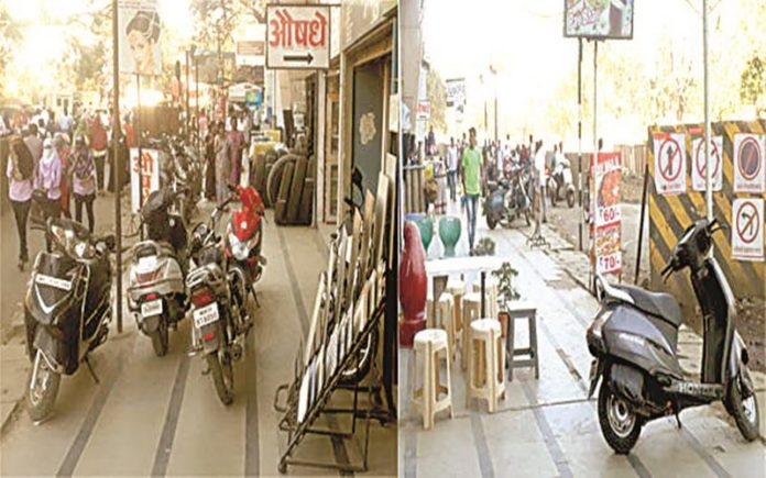 साताऱ्यातील पोवई नाका ते गोडोली मार्गावर सार्वजनिक बांधकाम विभागाच्या समोरच रजताद्री हॉटेलच्या शेजारी असलेल्या इमारतीच्या तळमजल्यावरील व्यापाऱ्यांनी विक्रीसाठी कपडे, टायर, फरशी तसेच खाद्यपदार्थांचे टेबल आणि त्यांची दुचाकी वाहने बिनधास्त पार्किंग करुन सातारकरांच्या अडचणीत भर घातली आहे. या इमारतीमध्ये समाजाला दिशा देणारी अनेक कार्यालये आहेत. परंतु, सकाळी 10 ते रात्री 8.30 पर्यंत येथील पदपथावर नगरपालिकेच्या भ्रष्ट अधिकाऱ्यांच्या मर्जीने त्याचा वापर केला जातो. ही बाब अत्यंत गंभीर असून राजकीय नेत्यासाठी भांडणारी सातारा विकास आघाडी व नगर विकास आघाडी आणि भाजपच्या नगरसेवकांना नेमका याचा विसर पडला आहे. सर्वच गोष्टी राजकीय नेत्यांवर अवलंबून नसतात. साताऱ्यात अनेक सामाजिक कार्यकर्ते आहेत. परंतु अशा गोष्टींकडे लक्ष देण्यासाठी त्यांना वेळ नसतो, ही बाब खटकत आहे.