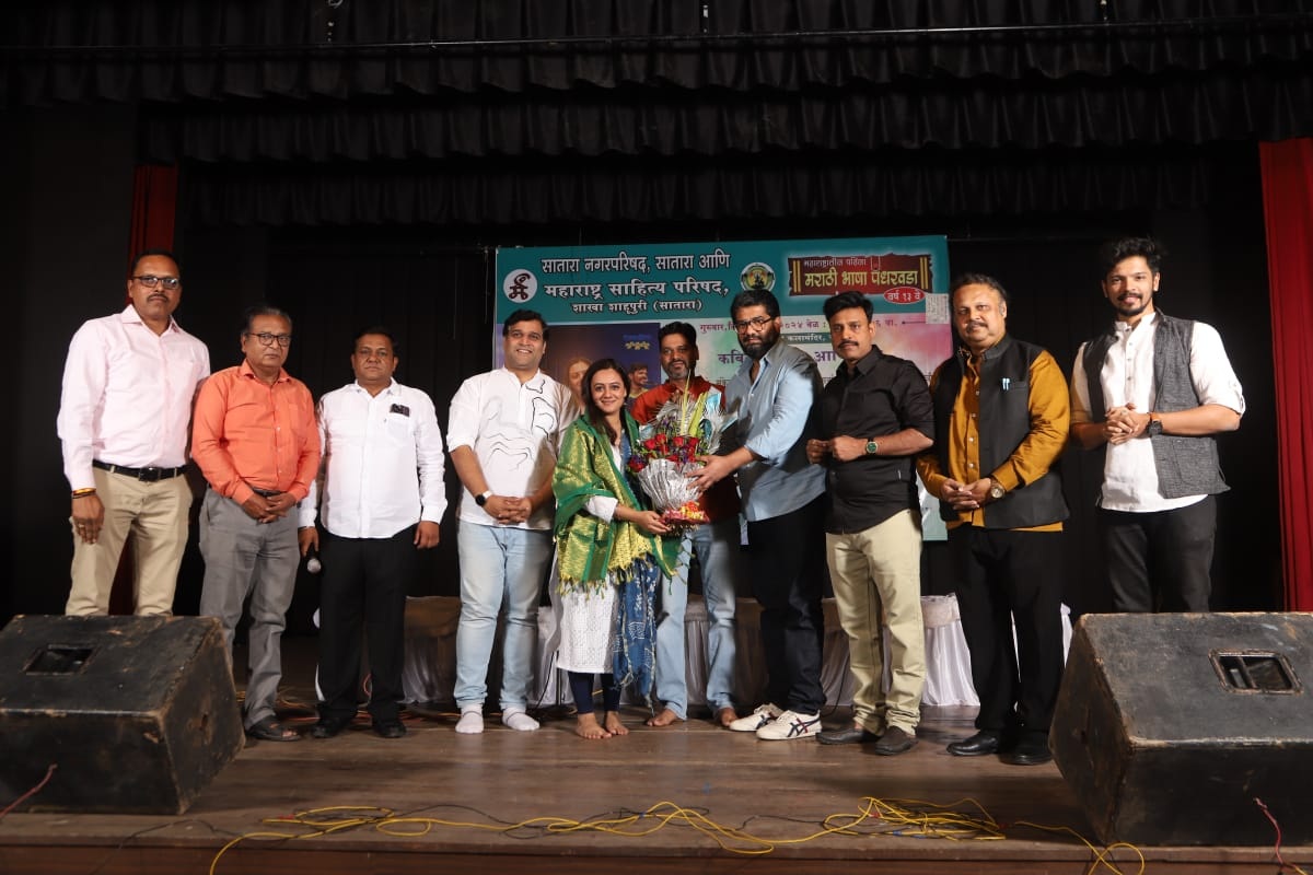 प्रारंभी संयोजकांच्यावतीने मान्यवरांचे स्वागत करण्यात आले. सातारकरांच्यावतीने अभिनेत्री स्पृहा जोशी यांचा आ. श्रीमंत शिवेंद्रसिंहराजे भोसले यांच्या हस्ते विशेष सत्कार करण्यात आला. यावेळी जिल्हा पत्रकार संघाचे अध्यक्ष हरिष पाटणे, मसाप शाहुपुरी शाखेचे अध्यक्ष विनोद कुलकर्णी, पत्रकार राजेश सोळस्कर, सुजित आंबेकर, ॲड. प्रमोद आडकर, किशोर बेडकिहाळ, डॉ.राजेंद्र माने, ॲड. चंद्रकांत बेबले उपस्थित होते. प्रास्ताविकात विनोद कुलकर्णी यांनी मसाप, शाहुपुरी शाखेच्या कार्याचा आढावा घेत नुकतेच कविवर्य बा.सी.मर्ढेकर यांच्या घराचे नुतनीकरण केले असून लवकरच कवी यशवंत, कवी गिरीश, वसंत कानिटकर यांचे स्मारकही करणार असल्याचे सांगत अभिनेत्री स्पृहा जोशी यांचे कौतुक केले. ज्येष्ठ पत्रकार राजेश सोळस्कर म्हणाले, मसाप, शाहुपुरी शाखेने विविध साहित्यिक कार्यक्रम आयोजित करुन आणि नाविन्य पूर्ण उपक्रम राबवून शाहुपुरी हे नाव महाराष्ट्रात पोहचवले आहे. युवा पिढीने मराठी माध्यमाकडे यावे यासाठी विशेष लक्ष द्यावे लागेल. सातारा शहर आणि जिल्हयात मराठी भाषेसाठी कार्य करणारे अनेकजण आहेत त्यांना मसाप शाहुपुरी शाखेने प्रोत्साहन द्यावे अशी अपेक्षा व्यक्त करत विनोद कुलकर्णी यांच्या कार्याचे कौतुक केले. यावेळी हरिष पाटणे, ॲड. प्रमोद आडकर यांनी मनोगते व्यक्त केली. यावेळी मसाप शाहुपुरी शाखेचे कोषाध्यक्ष राजेश जोशी यांचा अभिनेत्री स्पृहा जोशी आणि मान्यवरांच्या उपस्थितीत सत्कार करण्यात आला. सूत्रसंचालन नंदकुमार सावंत यांनी केले तर आभार अजित साळुंखे यांनी मानले. कार्यक्रमाला शिरीष चिटणीस, डॉ, संदीप श्रोत्री, रवींद्र झुटींग, ॲड. मिलिंद ओक, बाबुराव शिंदे, वजीर नदाफ, अनिल जठार, तुषार महामुलकर, सचिन सावंत, सतीश घोरपडे, मसाप शाहुपुरी शाखेचे पदाधिकारी, सदस्य आणि सातारकर रसिक उपस्थित होते.