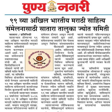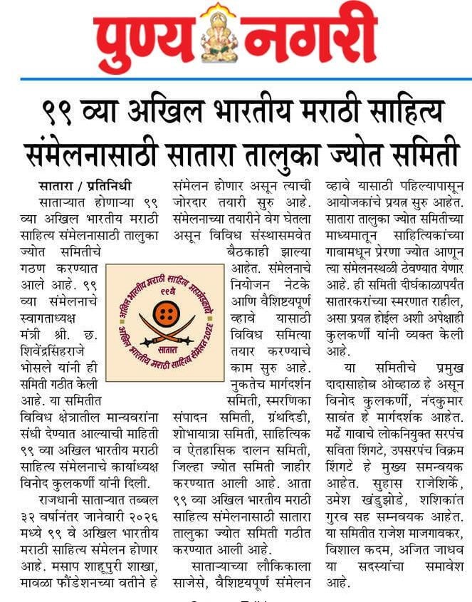 рд░рд╛рдЬрдзрд╛рдиреА рд╕рд╛рддрд╛рд▒реНрдпрд╛рдд рддрдмреНрдмрд▓ рейреи рд╡рд░реНрд╖рд╛рдирдВрддрд░ репреп рд╡реЗ рдЕрдЦрд┐рд▓ рднрд╛рд░рддреАрдп рдорд░рд╛рдареА рд╕рд╛рд╣рд┐рддреНрдп рд╕рдВрдореЗрд▓рди рд╣реЛрдгрд╛рд░ рдЖрд╣реЗ. рдорд╕рд╛рдк рд╢рд╛рд╣реВрдкреБрд░реА рд╢рд╛рдЦрд╛, рдорд╛рд╡рд│рд╛ рдлреМрдВрдбреЗрд╢рдирдЪреНрдпрд╛ рд╡рддреАрдиреЗ рд╣реЗ рд╕рдВрдореЗрд▓рди рд╣реЛрдгрд╛рд░ рдЕрд╕реВрди рддреНрдпрд╛рдЪреА рдЬреЛрд░рджрд╛рд░ рддрдпрд╛рд░реА рд╕реБрд░реБ рдЖрд╣реЗ